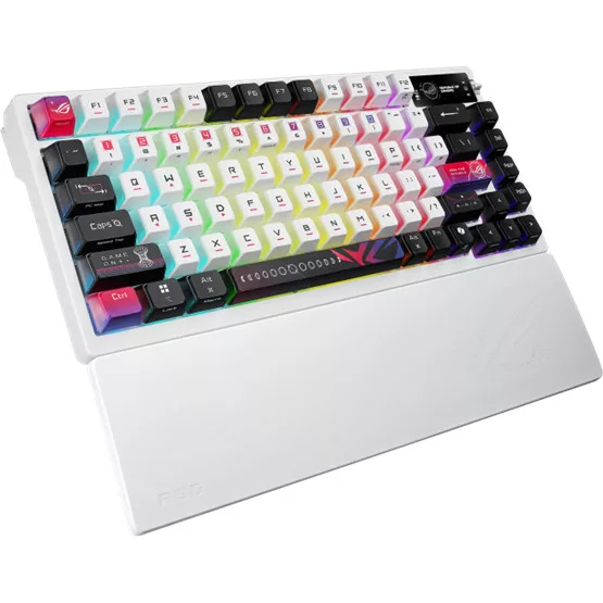 Angol kiosztású billentyűzet, ROG NX V2 mechanikus kapcsolók, RGB világítás, Csatlakozás: USB2.0 - Bluetooth5.1 - RF 2.4 GHz, Programozható gombok, OLED kijelző