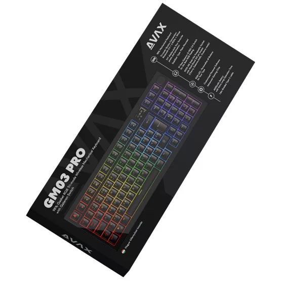 AVAX GM03 PRO 98% Gasket RGB tri-mode mechanikus billentyűzet Gateron piros switch, magyar kiosztás