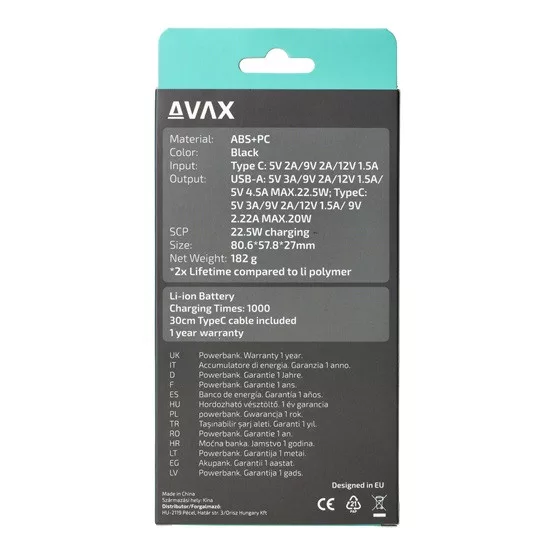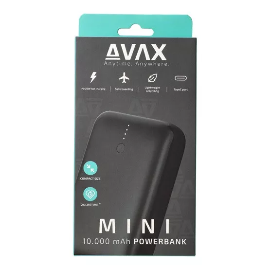 AVAX PB105B MINI PD/Type-C 20W gyorstöltő Powerbank 10.000mAh, fekete