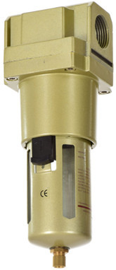 Légszűrő, szeparátor, olajleválasztó dehidrátor AF5000-10 Ezt a szűrőt a levegő párátlanítására használják. Ez minden pneumatikus rendszer alapvető eleme. A szűrő alkalmazásával többek között megakadályozhatja; szerszámok rozsdásodása, foltok szórópisztollyal történő festéskor, tömlők károsodása stb. A szűrő nem igényel további rögzítéseket, a kompresszorhoz csatlakoztatott mellbimbón vagy csatlakozón tartják. A víz kiürítése magában foglalja a szűrő alján található szelep húzását. Elválasztja az olajat és más szennyeződéseket is. Fém tartályfedéllel van felszerelve. Műszaki adatok: Magasság: 245mm Szélesség: 90mm Szűrés: 0,04 mm Szálak: 1 "(kb. 30-32mm) Munka / maximális nyomás: 0-9,7 bar / 14,7 bar Maximális áramlás: 5000 l / perc Tartály kapacitása: 130 ml Súly: 1 kg
