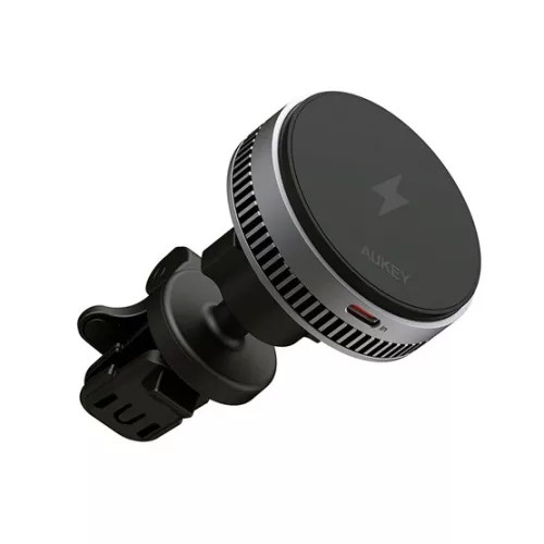 Aukey MagFusion Dash Pro Qi2 aktív hűtésű szellőzőrácsra rögzíthető, vezeték nélküli autós telefon töltő és tartó