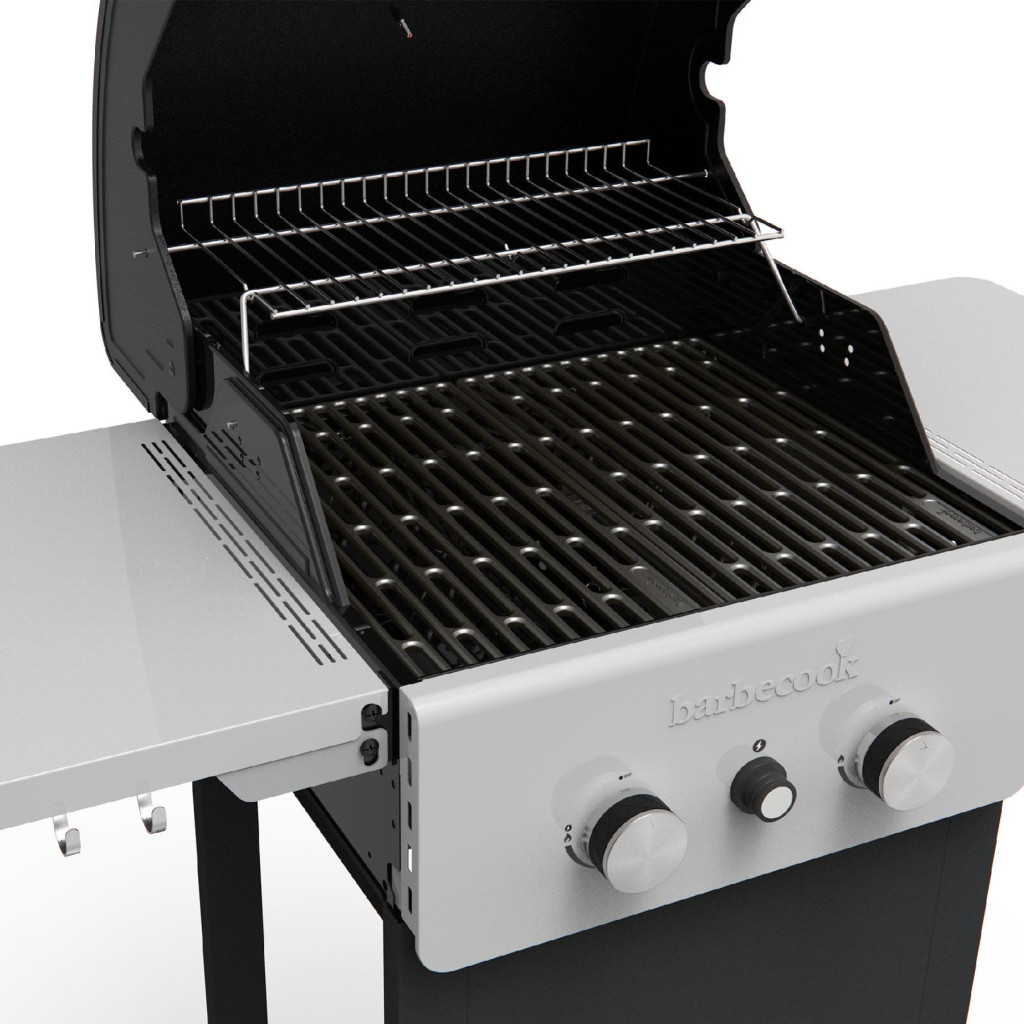 A Barbecook Spring 2002 gázgrill számos előnnyel rendelkezik, amely megkönnyíti a grillezést és emeli a kerti partik színvonalát. Az elektronikus gyújtórendszer (1 db AA elemmel működtetve, nem tartozék) lehetővé teszi a grill gyors és biztonságos begyújtását, míg a zománcozott fedélbe integrált hőmérő segítségével pontosan ellenőrizheti az étel hőmérsékletét. Az öntöttvas rácsok ideálisak a hozzávalók egyenletes és intenzív sütéséhez. A speciális melegen tartó rács segítségével az elkészült ételeket tökéletes hőmérsékleten tarthatja, míg a nagyméretű kerekeknek köszönhetően a grillt könnyedén mozgathatja. A mosogatógépben tisztítható csepegtetőedény egyszerűvé teszi a takarítást, míg a két összecsukható oldalasztal és a 3 tartozékkampó extra kényelmet és tárolási lehetőségeket biztosít grillezés közben.
