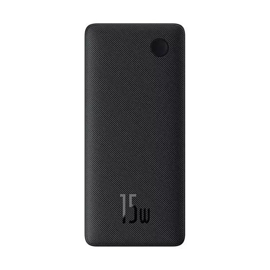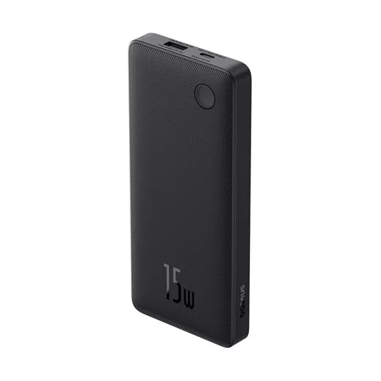 Baseus Airpow Lite gyorstöltő powerbank 10000 mAh, 15W, fekete + USB Type-C, 30cm kábel