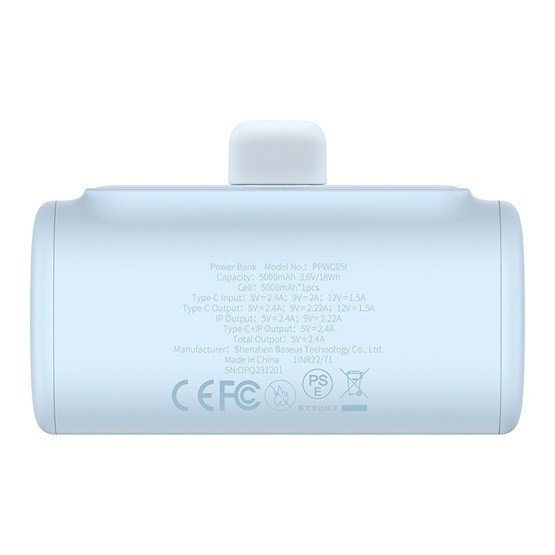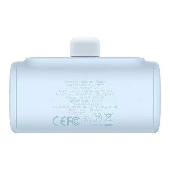Baseus Compact gyorstöltő powerbank 5000 mAh, 20W iPhone csatlakozóval, kék