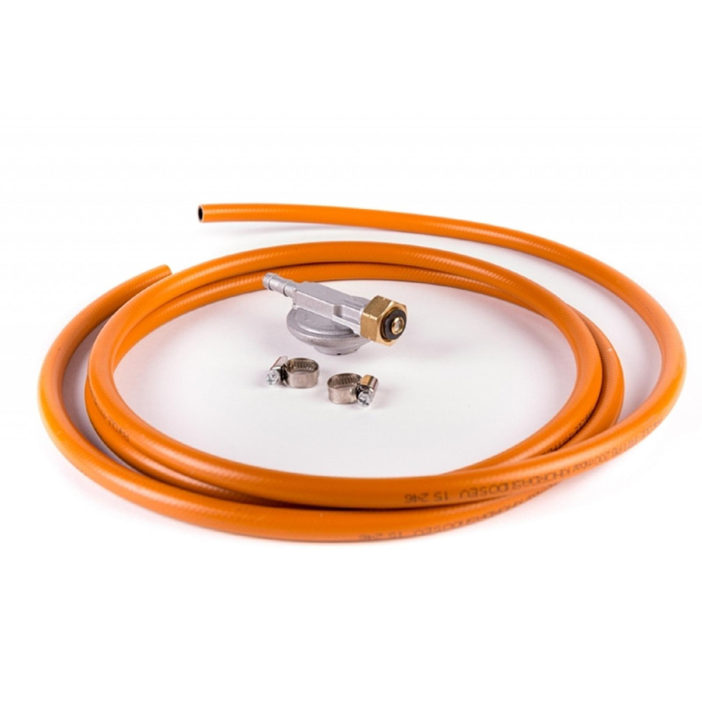 Ez a kiváló minőségű készlet tartalmazza a gyárilag beszabályozott nyomáscsökkentőt, amely 30 mbar kimeneti nyomásra csökkenti a háztartási palackba töltött PB gáz nyomását. A szettben található egy 1,2 méter hosszú speciális műanyagköpenyes gumitömlő és két darab szorítóbilincs, amelyek segítségével biztonságosan csatlakoztathatja például a Barbecook grillkészülékét a PB-gáz palackhoz.