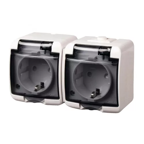 GAO 22121 2 férőhelyes földelt aljzat, kültéri IP44 kivitel, 230 V~ / 50 Hz / 16 A, fehér-füst