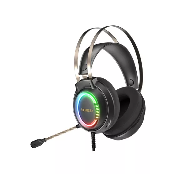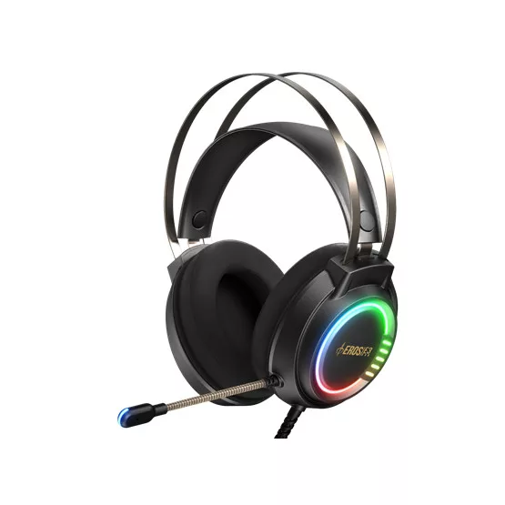Az EROS E3 egy audio-rich játék headsetet tartalmaz, amely egy 50 mm-es, RGB stream világítással díszített meghajtóegységgel és túlméretezett, puha hab fülkagylóval rendelkezik a kényelmes és hosszan tartó játékülésekhez.
