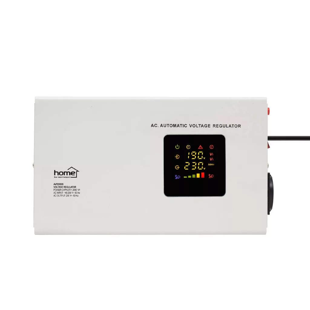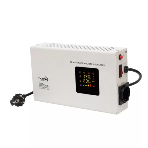 HOME AVR2000S feszültségstabilizátor, 2000VA, automatikus működés, vékony kivitel, falra szerelhető, színes digitális kijelző, teljeskörű meghibásodás elleni védelem