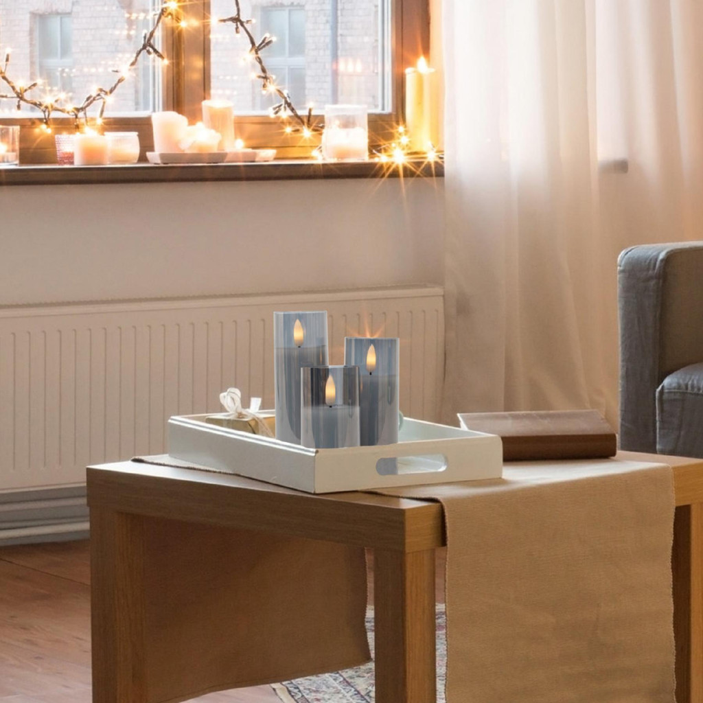 Ez a gyertyaszett valósághű, melegfehér, pislákoló lángnyelv alakú LED-ekkel rendelkezik, melyek valódi viaszba vannak öntve, így a gyertya kinézete és fénye szinte megkülönböztethetetlen a hagyományos mécsesektől. Az elegáns üveg kialakítás további stílust kölcsönöz, amely bármely helyiségben megállja a helyét. A gyertyák kényelmes be- és kikapcsolóval rendelkeznek, így könnyen vezérelhetőek. A tápellátást 2 darab 3 V-os CR2032 gombelem biztosítja, amelyeket a csomag tartalmaz, így azonnal használatra kész.