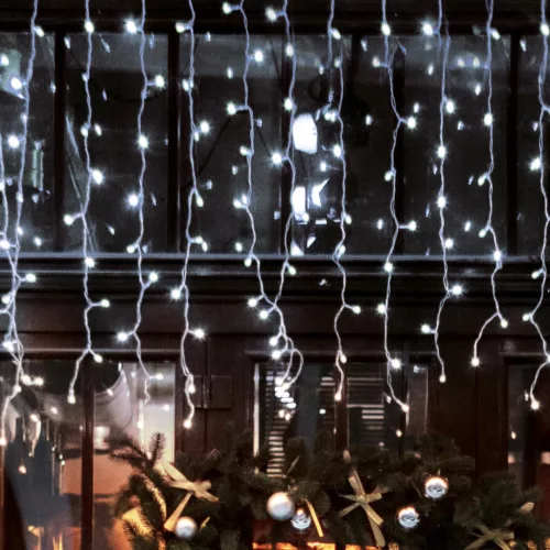 Ez a 10 méter hosszú fényfüggöny 400 hidegfehér LED-del rendelkezik, melyek ragyogó, állófényű világítást biztosítanak. A fehér vezeték diszkréten simul a környezetbe, így a figyelem teljes mértékben a tiszta, ragyogó fényekre irányul. A 3/7/4/6 elosztásban kialakított füzérek 20 csoportban oszlanak el, így biztosítva a fények egyenletes eloszlását, miközben a sorolható kialakítás lehetővé teszi, hogy több DLI, DLF vagy DLFJ terméket összekapcsoljon, és lenyűgöző fényhatásokat hozzon létre.