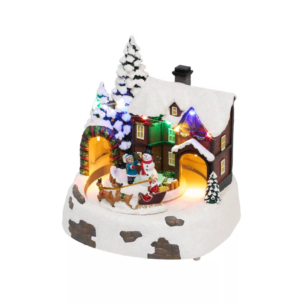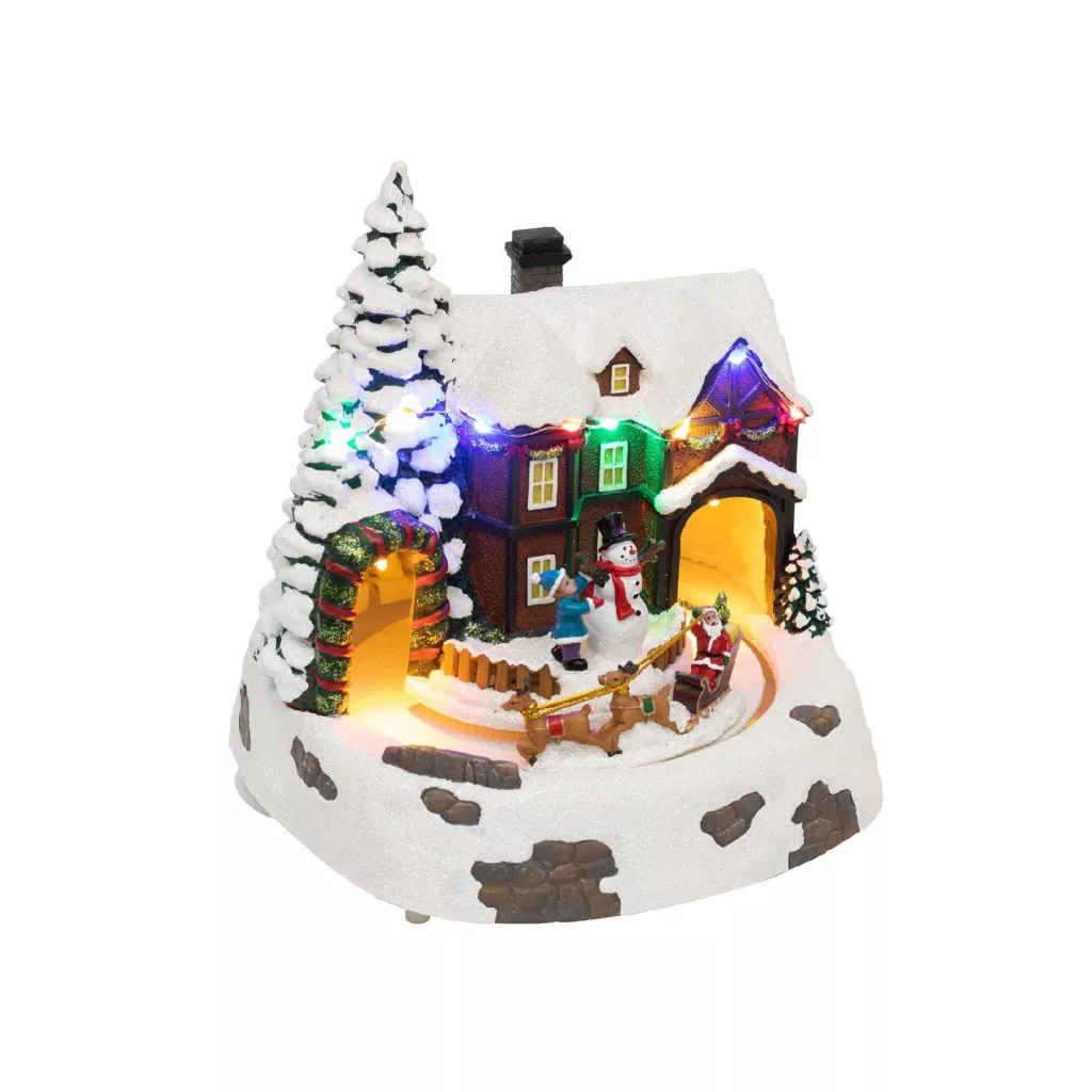 Home DRM 15 dioráma, havas ház, színes LED, rénszarvasszán, beltéri