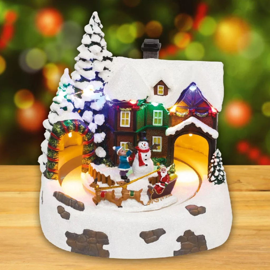 A termék beltéri kivitelben készült, így bármely szobájában pompázhat. A fehér LED világítás finoman emeli ki a házikó részleteit, míg a körbejáró rénszarvasszán varázslatosan életre kelti környezetét. A tápellátást 3 x 1,5 V (AA) elem biztosítja, melyek nem tartoznak a csomaghoz.