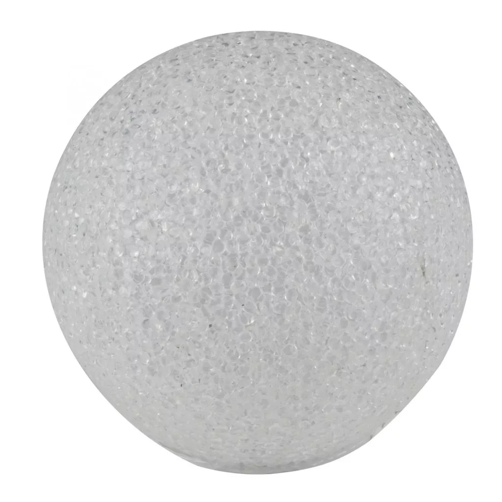 A termék rugalmas EVA alapanyagból készült, amely tartósságot és sokoldalúságot biztosít. A 20 cm átmérőjű gömbben található 2 db melegfehér LED fényt bocsát ki, amely kellemes atmoszférát teremt a környezetében.