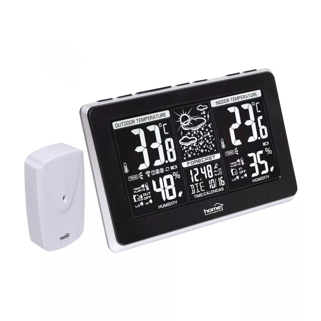A Home HCW 25 időjárás-állomás külső jeladóval tökéletes választás azok számára, akik megbízható információkat szeretnének kapni a hőmérsékletről, páratartalomról, valamint az időjárási trendekről. Az előre jelzett időjárás szimbólumok, a hőmérsékleti riasztás, és a letisztult negatív fehér LCD kijelző garantálja, hogy a készülék nemcsak hasznos, de elegáns kiegészítője is lesz otthonának.