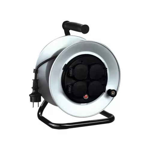 A kábeldob 4 db 250 V-os aljzattal ellátott, melyet takarófedél véd.