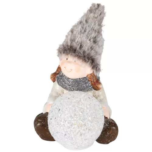 Home KDC 28 ülő figura kerámia-plüss dekoráció, EVA gömb, 1 db LED