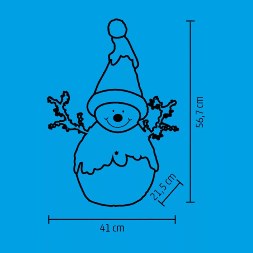 A figura 12 darab melegfehér LED-del van felszerelve, amelyek lágy, barátságos fényt árasztanak, így biztosítva a tökéletes ünnepi atmoszférát. Ráadásul a kerámia alapanyag aprólékosan kidolgozott részletei még szebbé és élethűbbé teszik a hóembert, egy igazán különleges darabbá varázsolva azt. A figura tápellátása egyszerű, mindössze három 1,5 V-os AA elem szükséges hozzá (nem tartozék), így könnyedén elhelyezheti bárhol a lakásban anélkül, hogy konnektorra lenne szüksége. Kompakt, mégis impozáns méreteinek köszönhetően (41 x 56,7 x 21,5 cm) könnyen megtalálja helyét a nappaliban, előszobában vagy akár a teraszon is, garantálva, hogy bárhol is helyezi el, azonnal a figyelem középpontjába kerül.