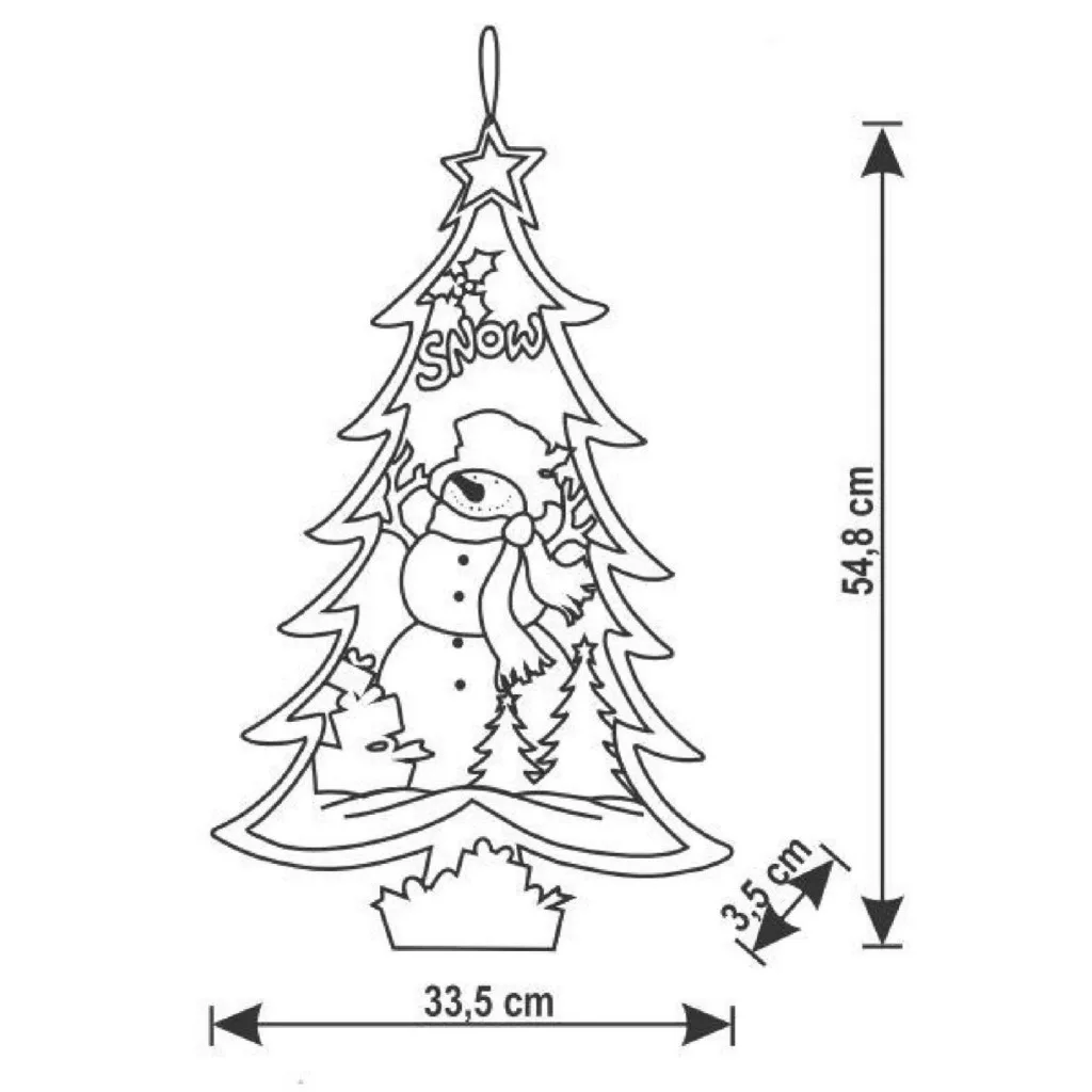 Ez a festett fa dekoráció színes, villogó fénypontokkal van díszítve, és azonnal ünnepi hangulatot teremt bárhol, ahol elhelyezi. A felakasztható kivitelnek köszönhetően egyszerűen elhelyezhető az ablakban, a falon vagy az ajtón. A tápellátás 2 x 1,5 V (AA) elemmel biztosított, amelyek nem tartoznak a csomaghoz.