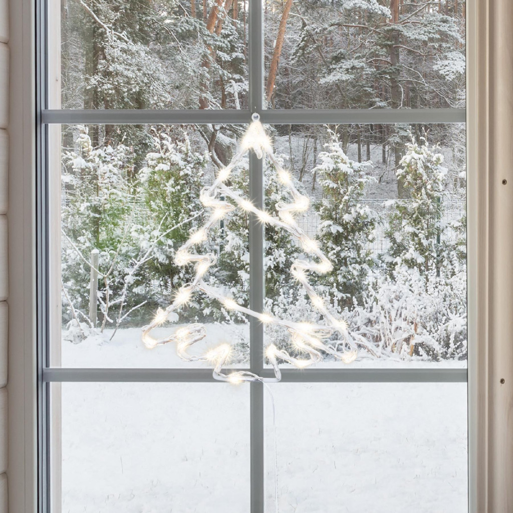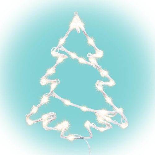 Home KID502WW fenyőfa ablakdísz, kül- és beltéri kivitel, 35 db melegfehér LED, 2 tapadókorong, fehér tápkábel, 33 x 28 cm