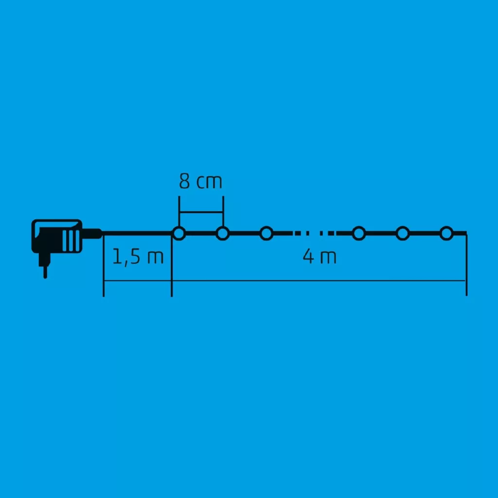 A KII 50B/WW pontosan ilyen: egy beltéri kivitelű, állófényű fényfüzér, melyben 50 melegfehér LED gyönyörködteti szemét.