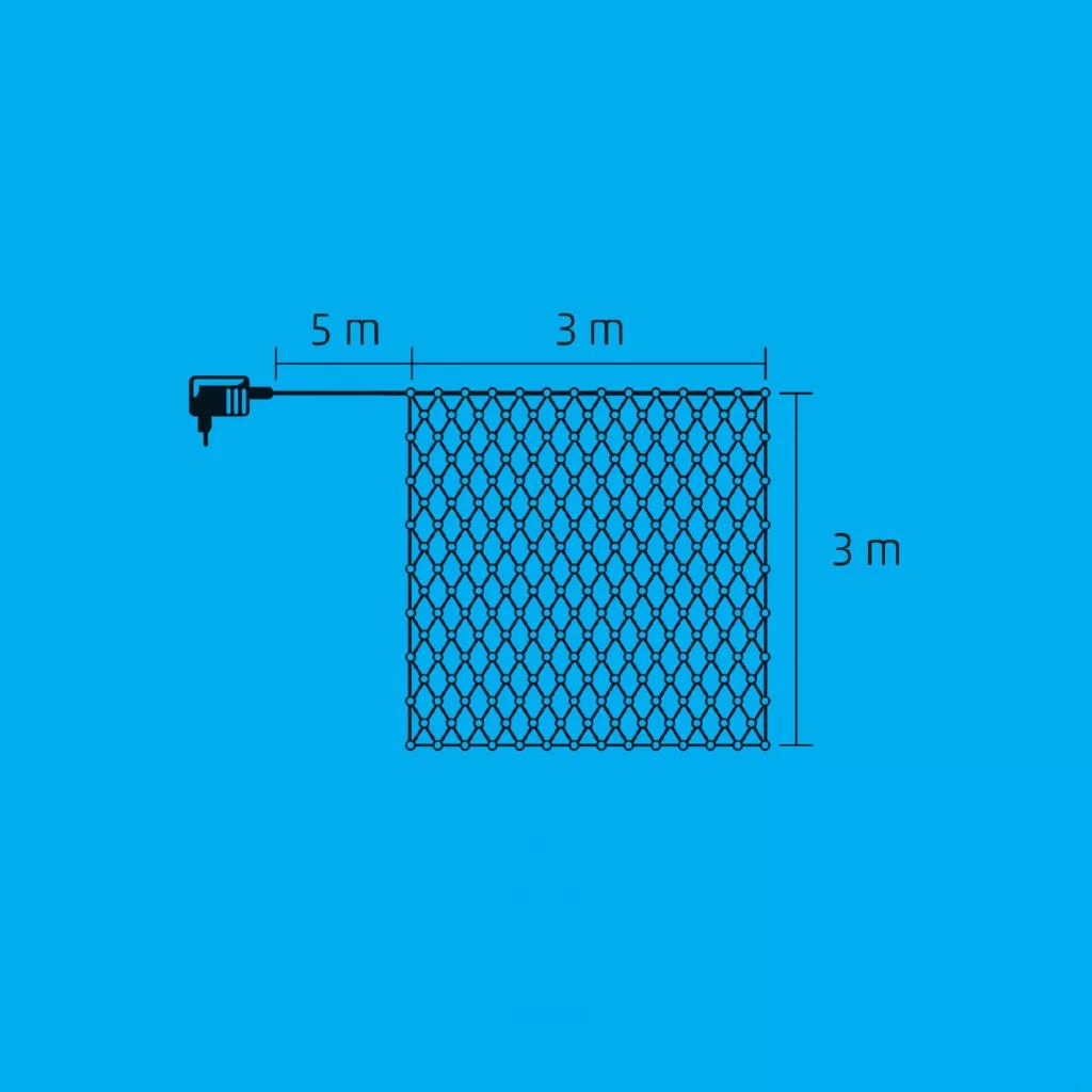 háló: 3 m x 3 m • tápvezeték hossza: 5 m