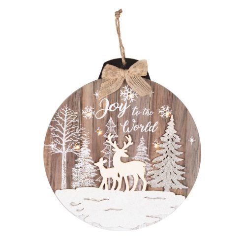 Home KLW 32 ablakdísz, ajtódísz, fa, 6 db LED, lézervágott, kapcsolható