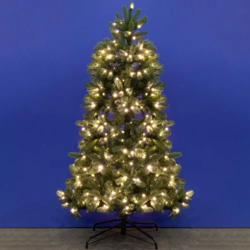 Ez a 210 cm magas, prémium minőségű műfenyő 500 db speciális, kétszínű LED-del van felszerelve, amelyek garantálják az ünnepi ragyogást, mind melegfehér, mind pedig színes fényben. A különleges talpkapcsoló segítségével négyféle funkció közül választhat: választhatja a melegfehér állófényű megvilágítást, a színes állófényű változatot, a felváltva melegfehér és színes fényt, vagy akár teljesen ki is kapcsolhatja a világítást. Ez a sokoldalúság lehetővé teszi, hogy a fa minden alkalomhoz és hangulathoz alkalmazkodjon.