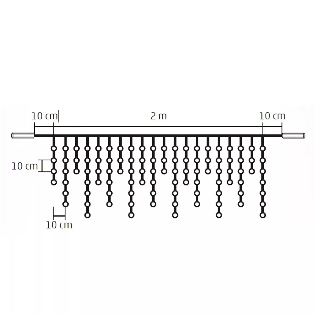 Ez a lenyűgöző fényfüggöny 100 db hidegfehér LED-del világítja meg az otthont, teret adva az ünnepi hangulatnak, miközben hideg, téli fényt áraszt. Ideális megoldás ablakok, erkélyek, teraszok, kerítések vagy belső terek dekorálására, hiszen különleges, szemet gyönyörködtető látványt nyújt, és a LED technológia hosszú élettartamot biztosít alacsony energiafogyasztás mellett. Ez a 2 méteres, sorolható fényfüggöny lehetővé teszi, hogy több szettet is egymáshoz kapcsoljon, így igény szerint bővítheti a fényfüzér hosszát.
