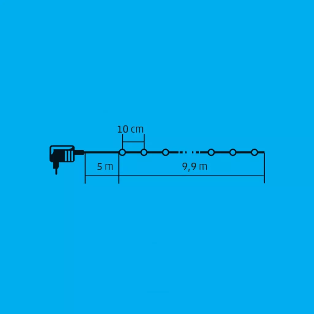 A termék 100 borostyán színű, állófényű LED-del rendelkezik, melyek ragyogó, meleg hangulatot teremtenek.
