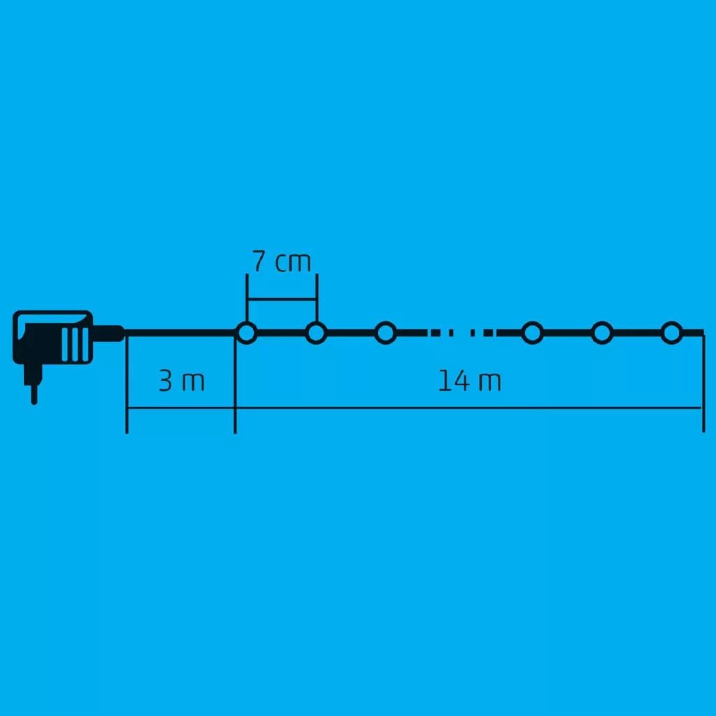Home LED 205/WW/M LED-es DUAL COLOR fényfüzér, 14 m / 200 db melegfehér és színes LED, zöld vezeték, 5 fényprogram, hálózati adapter, kül- és beltéri kivitel
