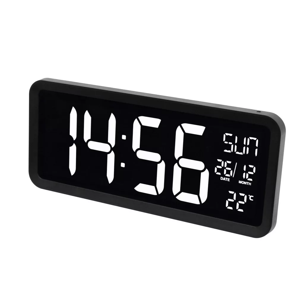 és a távolról is könnyen olvasható kijelző biztosítja, hogy akár a szoba másik végéből is azonnal leolvasható legyen az aktuális idő, dátum vagy hőmérséklet. Az óra egyszerre mutatja az időt, hónapot, napot, a hét napját és a hőmérsékletet, így átlátható és hasznos információkat nyújt.