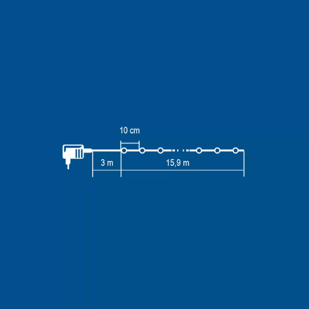 fényfüzér: 15,9 m, tápvezeték: 3 m