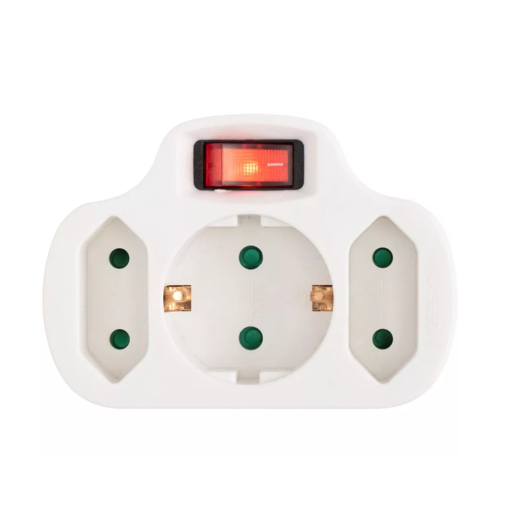 Home NVK 3/WH hálózati elosztó, kapcsolós 3 aljzat ( 1 földelt + 2 euró ), 250 V ~/ 50 Hz / 16 A / 3500 W