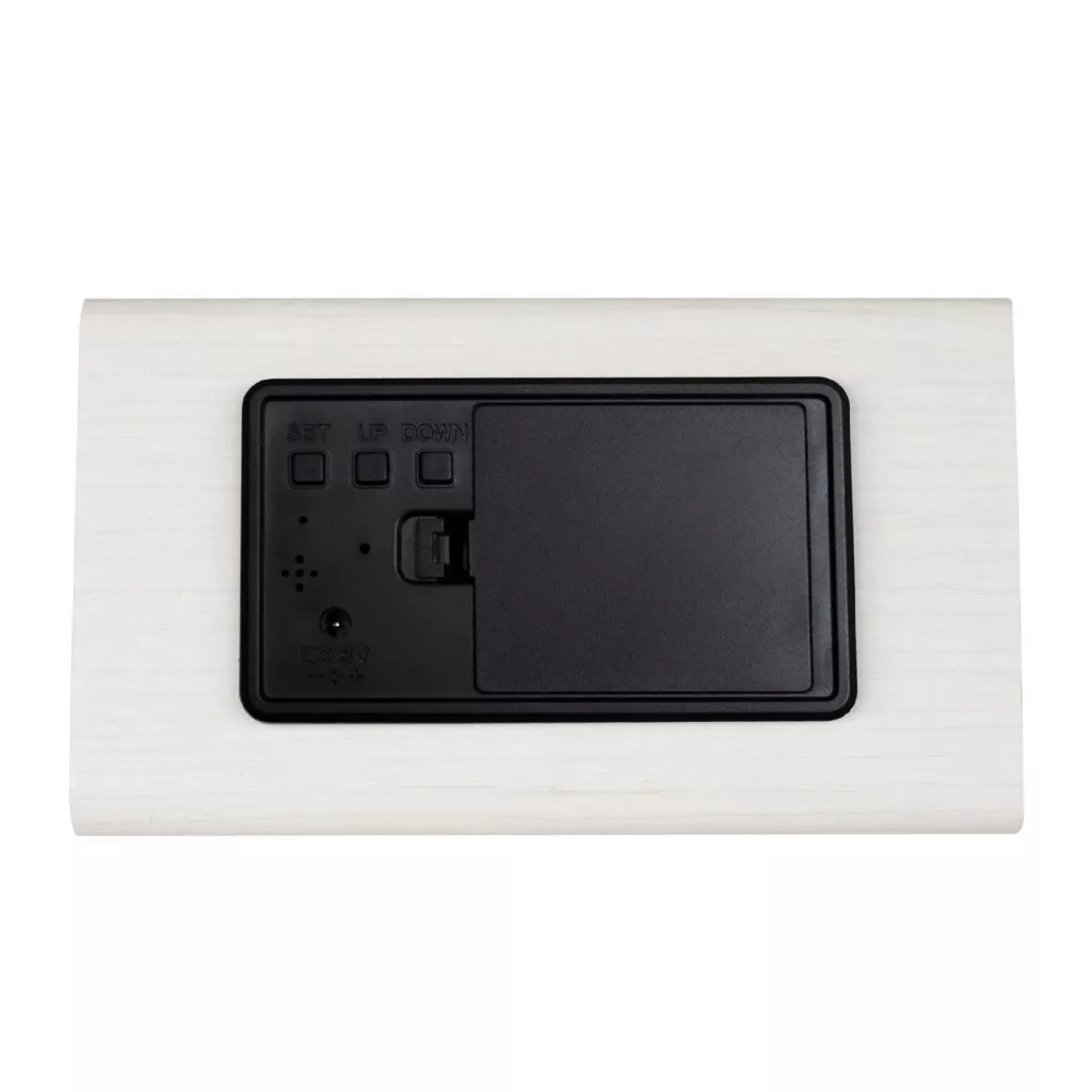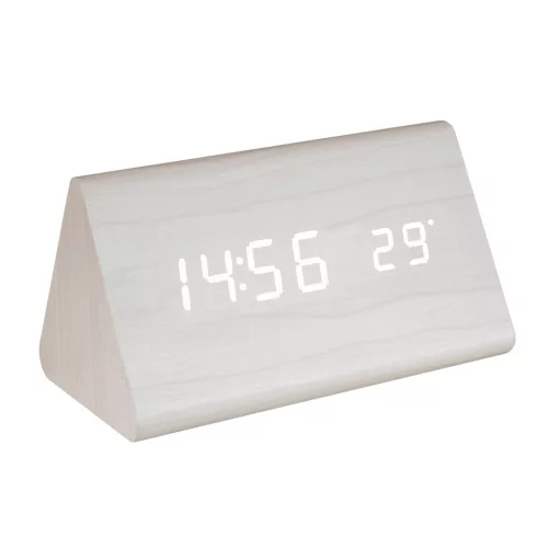 Az óra fehér LED kijelzője kiválóan olvasható, nappal és éjszaka egyaránt. A kijelzőt szükség esetén teljesen kikapcsolhatja, hogy az erős fény ne zavarja a nyugodt alvást. Az idő, dátum és hőmérséklet kijelzése (0–50°C) átlátható formában jelenik meg, így minden fontos információt egy pillantással megkap.