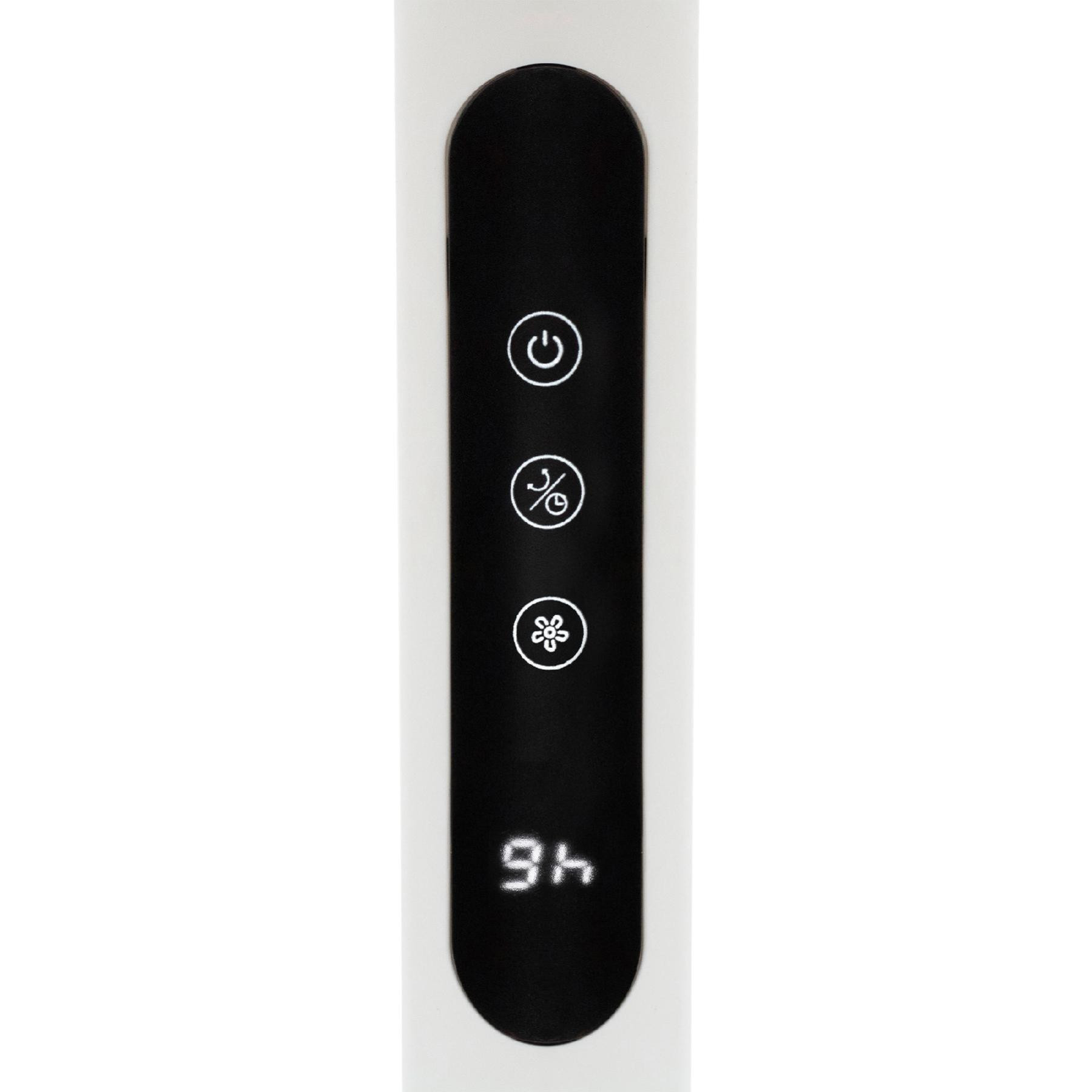 A modern fehér LED kijelző kikapcsolható, így a sötétben sem zavarja a fénye. A négy sebességfokozat mellett az éjszakai funkció is rendelkezésre áll, amely alacsony zajszintű légáramlást biztosít. A kapcsolható oszcillálás széles területre biztosít friss levegőt, míg a kikapcsolásidőzítővel 1-9 óra közötti időtartamra programozható.