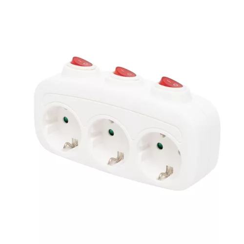 Home TPF 3K földelt hálózati T" elosztó, 3 db földelt aljzat, 3 kapcsoló"