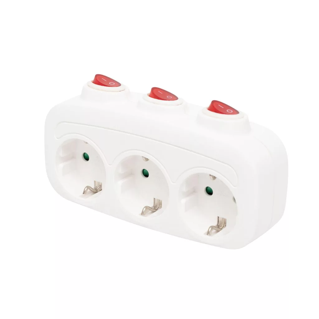 Három földelt aljzattal rendelkezik, mindegyikhez tartozik egy saját, egypólusú kapcsoló. Így könnyedén irányíthatja az egyes csatlakoztatott eszközök áramellátását anélkül, hogy ki kellene húznia a csatlakozódugókat. Fontos megjegyezni, hogy a teljes biztonság érdekében a készülék csak akkor lesz teljesen feszültségmentes, ha azt kihúzzuk az áramforrásból.