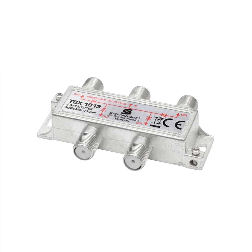Home TSX 1913 F elosztó, HQ professzionális minőség, 75 Ohm, IP44, cink-ötvözet konstrukció, 5-2400 MHz, 4 utas, 1 bemenet, 4 kimenet