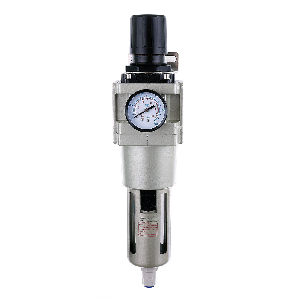 Légcsökkentő 3/4 hüvelykes szűrővel az AW5000-06D kompresszorhoz - 20um automatikus leeresztéssel A szűrőt a levegő párátlanítására használják. Ez minden pneumatikus berendezés pótolhatatlan eleme. A szűrő alkalmazásával többek között megakadályozhatja; szerszámok rozsdásodása, foltok szórópisztollyal történő festéskor, tömlők károsodása stb. Elválasztja az olajat és más szennyeződéseket is. Amikor az elválasztott víz szintje elér egy bizonyos magasságot, a tartály automatikusan kiürül a vízből. Mindössze annyit kell tennie, hogy csatlakoztassa a tömlőt (10 mm), és merítse egy nagyobb tartályba. Ennek köszönhetően nem kell emlékeznünk arra, hogy kiürítsük. A reduktor előnye a jó és tartós konstrukció, egy tiszta nyomásmérő, egy levehető akasztó, amelyet a reduktor falra csavarozására használnak, a szabályozó zárja (fel - le). 3/4" pneumatikus rendszerekben használják, és alapvető elem. Műszaki adatok: Magasság kb. 375 mm Szélesség: 95 mm Beállítási tartomány: 0,5–10 bar Menetek: 3/4" (kb. 24mm belső) Maximális nyomás: 15 bar Névleges teljesítmény: 5000 l/perc Szűrés 0,02 mm Tartály térfogata: 45 ml Működési hőmérséklet: 60 °C-ig