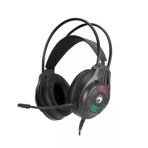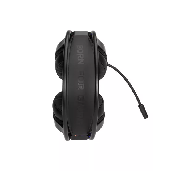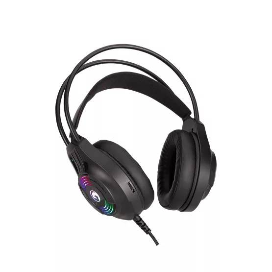 Gaming headset – Csatlakozás: USB + 3,5 mm jack – Hangszóró: 40 mm – Frekvencia: 20 Hz – 20 kHz – Érzékenység: 89 dB ±3 dB – Kábelhossz: 1,8 m – Súly: 262 g – RGB háttérvilágítás – 360°-ban állítható mikrofon – Állítható hangerő