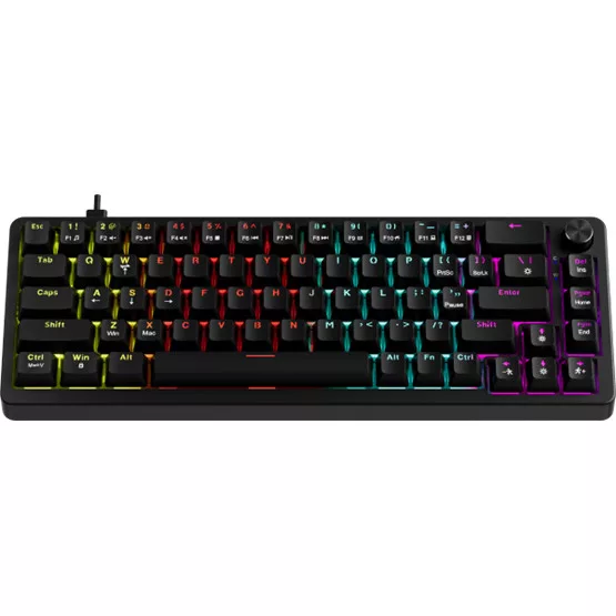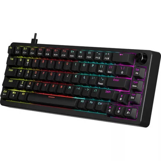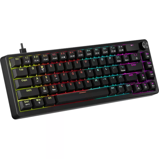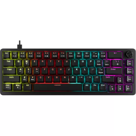 ARMA 67 mechanikus billentyűzet - Kiosztás: US - Vezetékes - Csatlakozás: USB-C - Mechanikus kapcsolók: Marvo hot-swappable, 50 millió leütés élettartam - Gombok száma: 67 + görgő - Anti-ghosting - Háttérvilágítás: szoftveresen állítható RGB - Kompakt