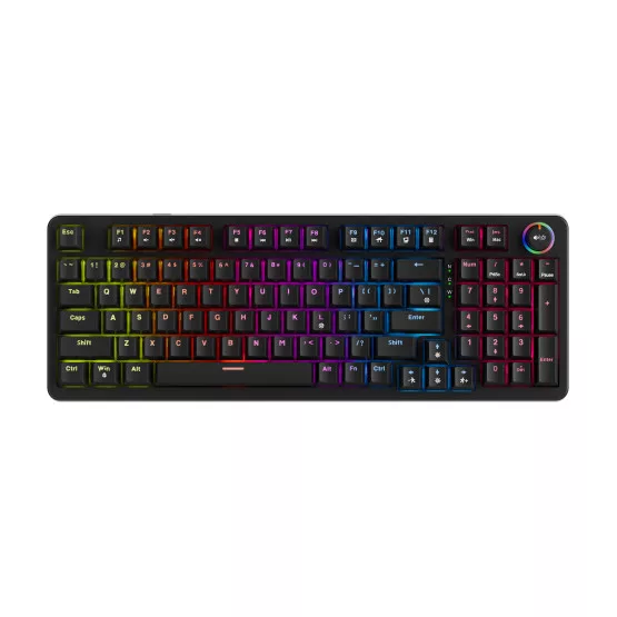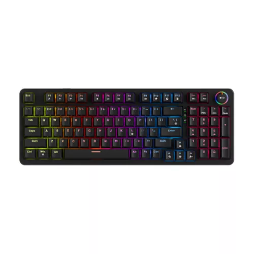 ARMA 98 mechanikus billentyűzet - Kiosztás: US (96 gomb) - Vezetékes - Csatlakozás: USB - Mechanikus gombok: Hot-Swappable - Anti-ghosting - Háttérvilágítás: szoftveresen állítható RGB, integrált görgővel - Kompakt, helytakarékos.