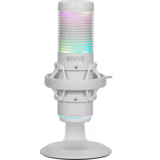 A Marvo MIC-07 WH egy vezetékes USB mikrofon, amely elsősorban gamer használatra készült, és kiváló minőségű hangátvitelt biztosít. A mikrofon IC modellje az AMP1821 zajcsökkentő chippel van ellátva, érzékenysége -32 dB  3 dB, frekvenciatartománya 20 Hz-től 20 kHz-ig terjed. Dual működési módokkal rendelkezik: kardioid és omni-irányított, amelyet könnyen válthatunk a forgatható kapcsolón. Az 1,8 méteres kábel USB csatlakozóval kapcsolódik, és RGB háttérvilágítással rendelkezik, amely igény szerint ki- vagy bekapcsolható.