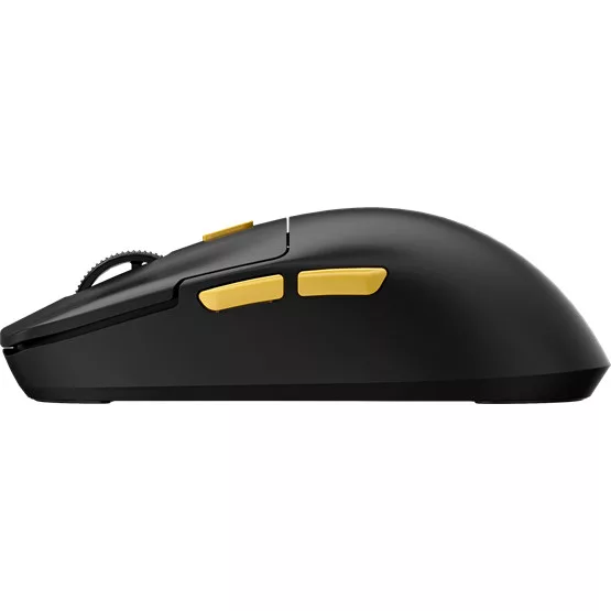 A Marvo G912W BK egy vezeték nélküli, ultrakönnyű gamer egér fekete színben. A tri-módos csatlakozás lehetővé teszi a használatot vezetékes USB-C kapcsolaton, 2,4 GHz-es vezeték nélküli módban és Bluetooth 5.0 kapcsolaton keresztül, így széles kompatibilitást biztosít bármilyen eszközzel. Az optikai Pixart PAW3327 szenzor maximális érzékenysége 12000 DPI, ami precíz és gyors mozgásvezérlést kínál. Az egér 7 programozható gombbal rendelkezik, RGB világítással és alacsony, 63 grammos súllyal.