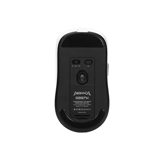 Marvo Niro 60 Wireless Gaming Mouse - Tri-módú csatlakozás: 2,4 GHz, Bluetooth, USB-C - Érzékelő: PixArt 3311 - DPI: 800-12000 - Programozható gombok: 6 - Akkumulátor: 300 mAh - Súly: 55 g - Polling rate: 1000 Hz (vezetékes/2,4 GHz), 125 Hz (Bluetooth) -