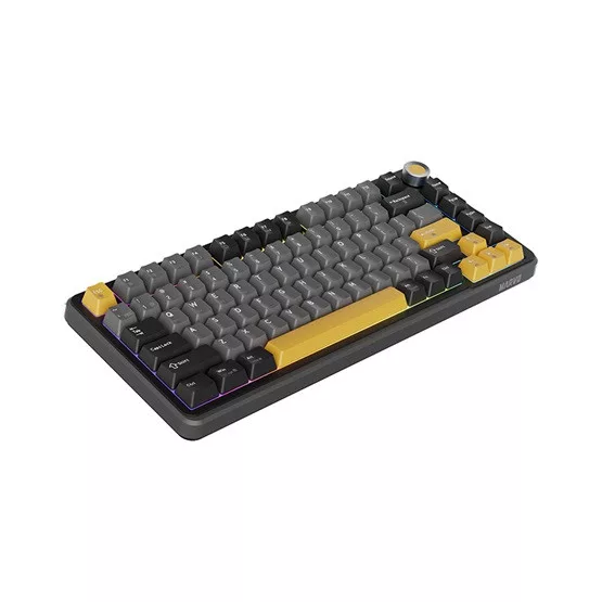 75%-os gamer billentyűzet • Kiosztás: magyar • Vezetékes/vezeték nélküli • Csatlakozás: 2,4 GHz + USB + Bluetooth 5• Mechanikus gombok: Banana Crystal Linear • Anti-ghosting • Beépített 4000 mAh akkumulátor • Háttérvilágítás: szoftveresen állítható RGB