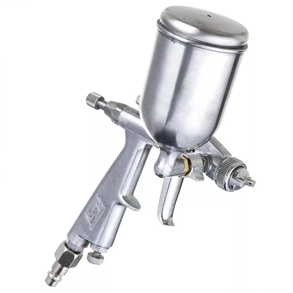 Mini szórópisztoly 0.8 F-3 A készlet tartalma: Szórópisztoly 0,5 mm-es fúvókával, Tisztítókefe, Kulcs, Légdugó. Professzionálisan készített, teljes egészében fémből készült mini szórópisztoly, amely tartós és ellenáll a sérüléseknek. Három beállítással van felszerelve (festék, levegő, sugár). A készlet tartalmaz egy kulcsot és egy tisztítókefét. A pisztoly ideális retusálásokhoz és egyéb apró alkatrészekhez. Kiváló minőségű fúvóka és az anyagalkalmazás pontossága jellemzi. Műszaki adatok: Fúvóka mérete: 0.5 Tartály kapacitása: 125ml Optimális üzemi nyomás: 3 bar Levegőigény: 28-56 l / perc