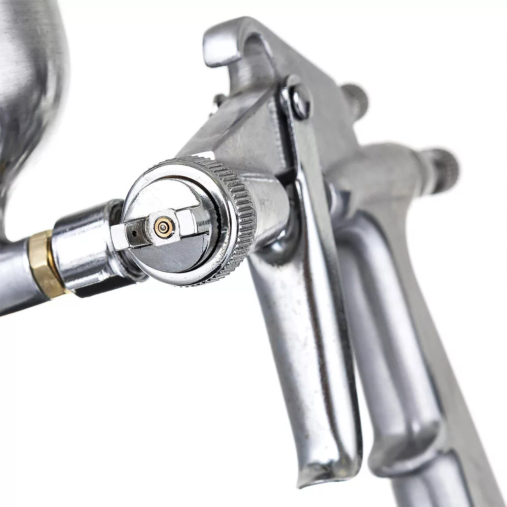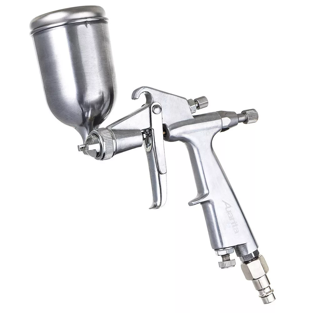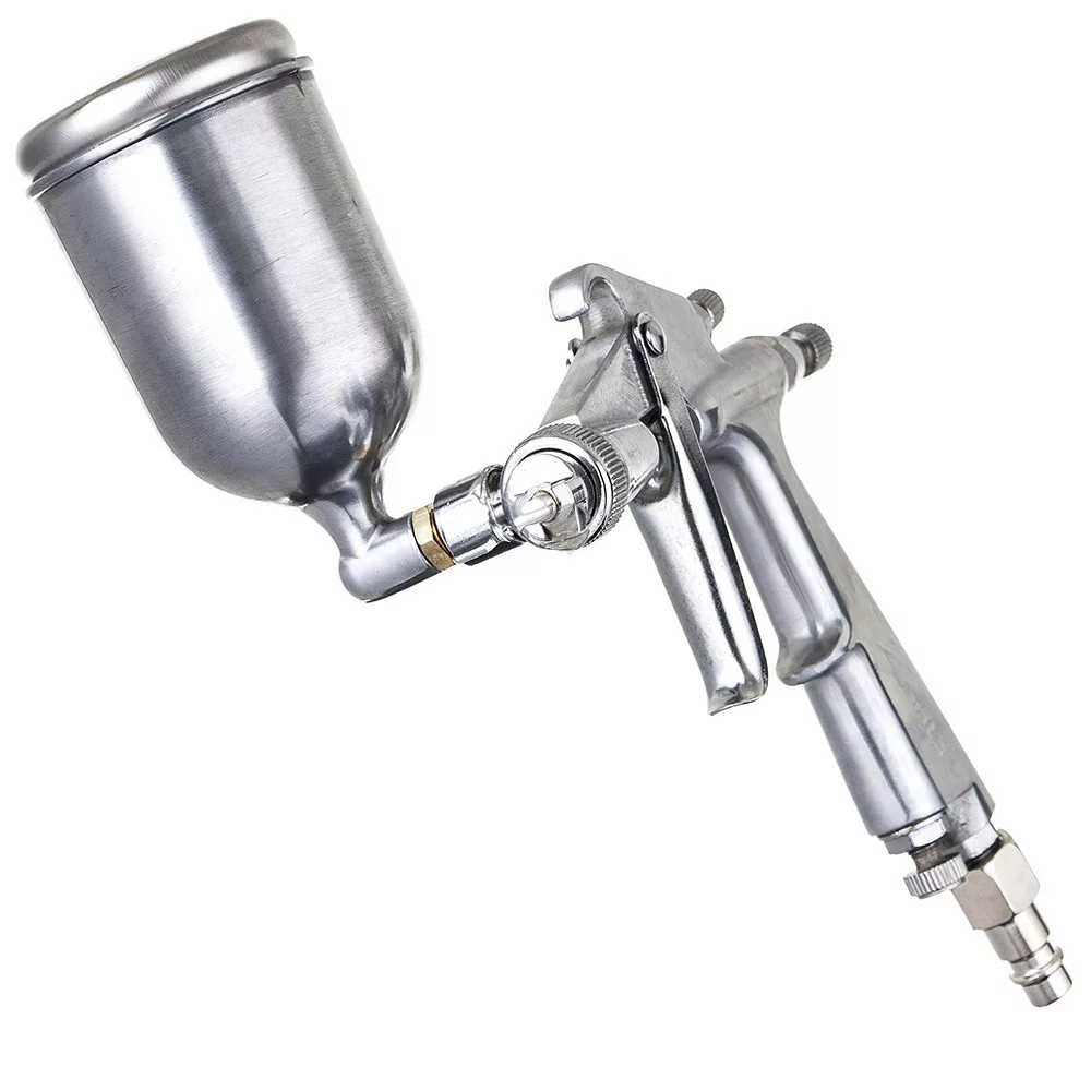 Mini szórópisztoly 0.8 F-3 A készlet tartalma: Szórópisztoly 1,0 mm-es fúvókával, Tisztítókefe, Kulcs, Légdugó. Professzionálisan készített, teljes egészében fémből készült mini szórópisztoly, amely tartós és ellenáll a sérüléseknek. Három beállítással van felszerelve (festék, levegő, sugár). A készlet tartalmaz egy kulcsot és egy tisztítókefét. A pisztoly ideális retusálásokhoz és egyéb apró alkatrészekhez. Kiváló minőségű fúvóka és az anyagalkalmazás pontossága jellemzi. Műszaki adatok: Fúvóka mérete: 1.0 Tartály kapacitása: 125ml Optimális üzemi nyomás: 3 bar Levegőigény: 28-56 l / perc