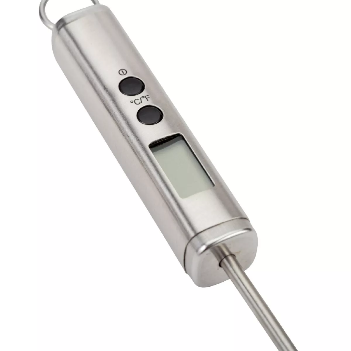 Ez a digitális maghőmérő rendelkezik egy könnyen olvasható LCD kijelzővel, mely megmutatja az aktuális hőmérsékletet és a sütési időt is. A hőmérséklet mérési tartománya -30°C és +250°C (-22°F és +482°F) között van, így szinte minden főzési szituációban használható. A készülék rozsdamentes acél szondája 22 cm hosszú, ami biztonságos használatot garantál sütés közben.