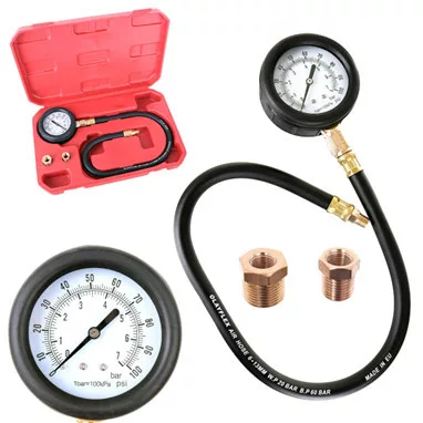 Olajnyomásmérő tesztelő + tippek LT-A1009 professzionális olajnyomásmérő. A legtöbb dízel- vagy benzinmotort kezeli. A készlet két reduktort tartalmaz, amelyek egy 10 mm külső átmérőjű menetre vannak csavarozva, és 14 mm-es vagy 18 mm-es menetre redukálódnak. Zsír- és benzinálló gumitömlő. Műszaki adatok: Mérési tartomány: 0-7 bar Osztás: 0,1 bar Tömlő hossza: 58 cm A készlet súlya: 2 kg,
